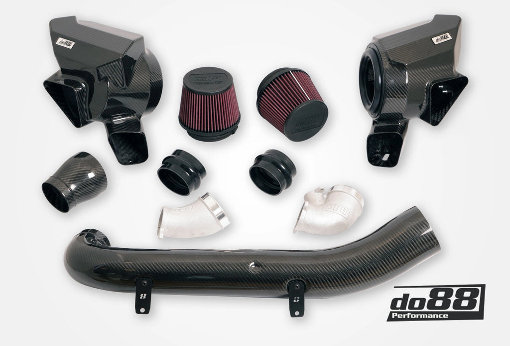 When designing a new intake system for a turbocharged engine, three critical factors are vital: filtration, airflow, and thermal management. Our do88 intake system is engineered to optimize these elements, air filtration, enhanced airflow, and keep low inlet temperatures for the turbos. The design of the airboxes—including their shape, volume, and the materials used in its construction—is precisely crafted to maximize airflow to the engine, and thereby improving performance.