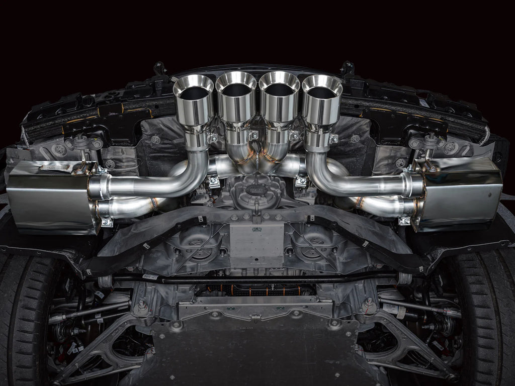 SwitchPath™ unleashes a signature soundtrack out of the Z06, whether the valves are open or closed, thanks to its specifically tuned straight-through mufflers and precision-engineered x-pipe. It’s aggressive with the valves closed, and viscous with them open–just how a high-revving flat-plane V8 should be. Well-collected and comfortable when cruising (like stock), a riot when ripping, all controlled via the factory controls. If you’re planning on high flow cats, proceed with confidence as we engineered our mufflers to be fully capable of controlling those harsh frequencies.