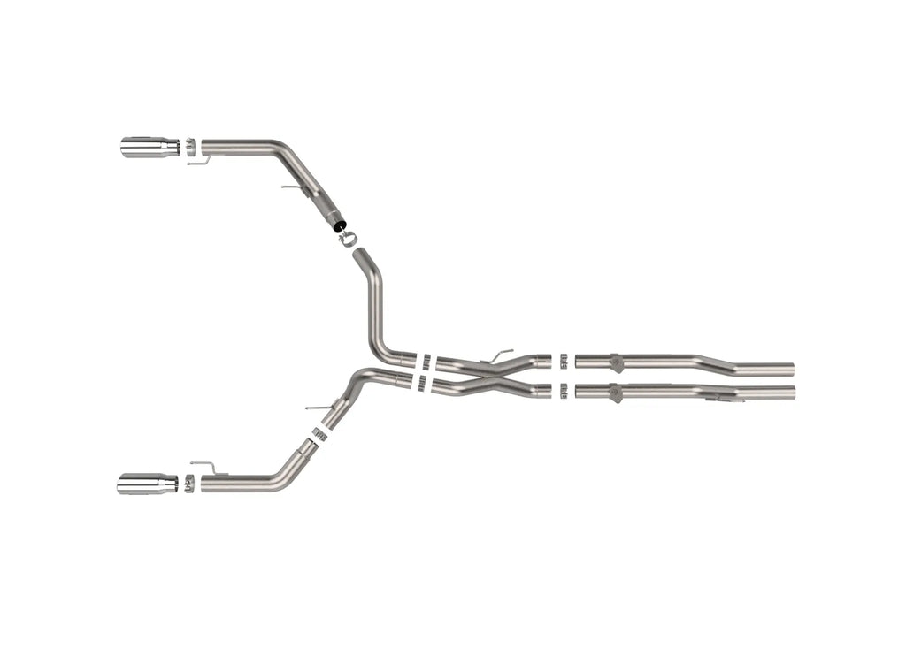Finishing off this exhaust system are dual 4-1/2 IN diameter 304 stainless steel clamp-on exhaust tips. The tips features an aFe POWER logo plate riveted on for a unique style.