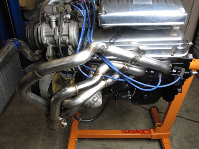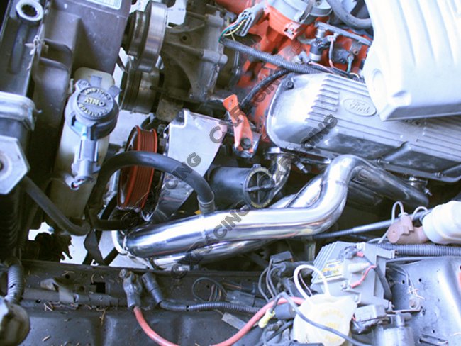 304 Stainless Steel Headers, with 2.5" Cross Pipe and 3' Downpipe.