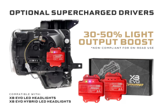 - On and Off Road: Meets DOT compliance standards for public roads in the USA in standard form, with an optional Supercharged LED driver to boost intensity by 30-50%, making them the brightest option for F-150 owners who want to maximize output for off-road use.