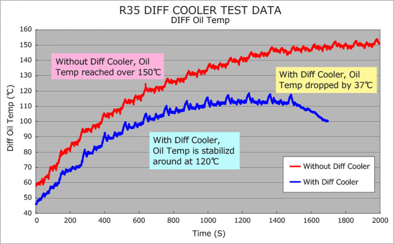 * In-house testing at the Fuji Speedway racing course confirmed that the differential oil temperature dropped by approximately 37 degrees C. This also resulted in a drop in DCT oil temperature of approximately 5 degrees C and coolant temperature of approximately 3 degrees C. (Note) The above data is in-house data from a vehicle developed by our company. Results may vary depending on driving conditions, vehicle specifications, etc.