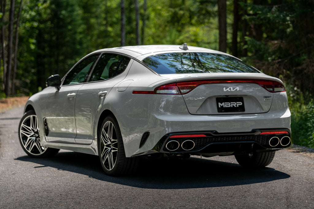 MBRP 2022 + Kia Stinger 3.3L T304 SS Cat-Back Exhaust- Dual Split Rear Quad Outlet Uses Factory Bezels
