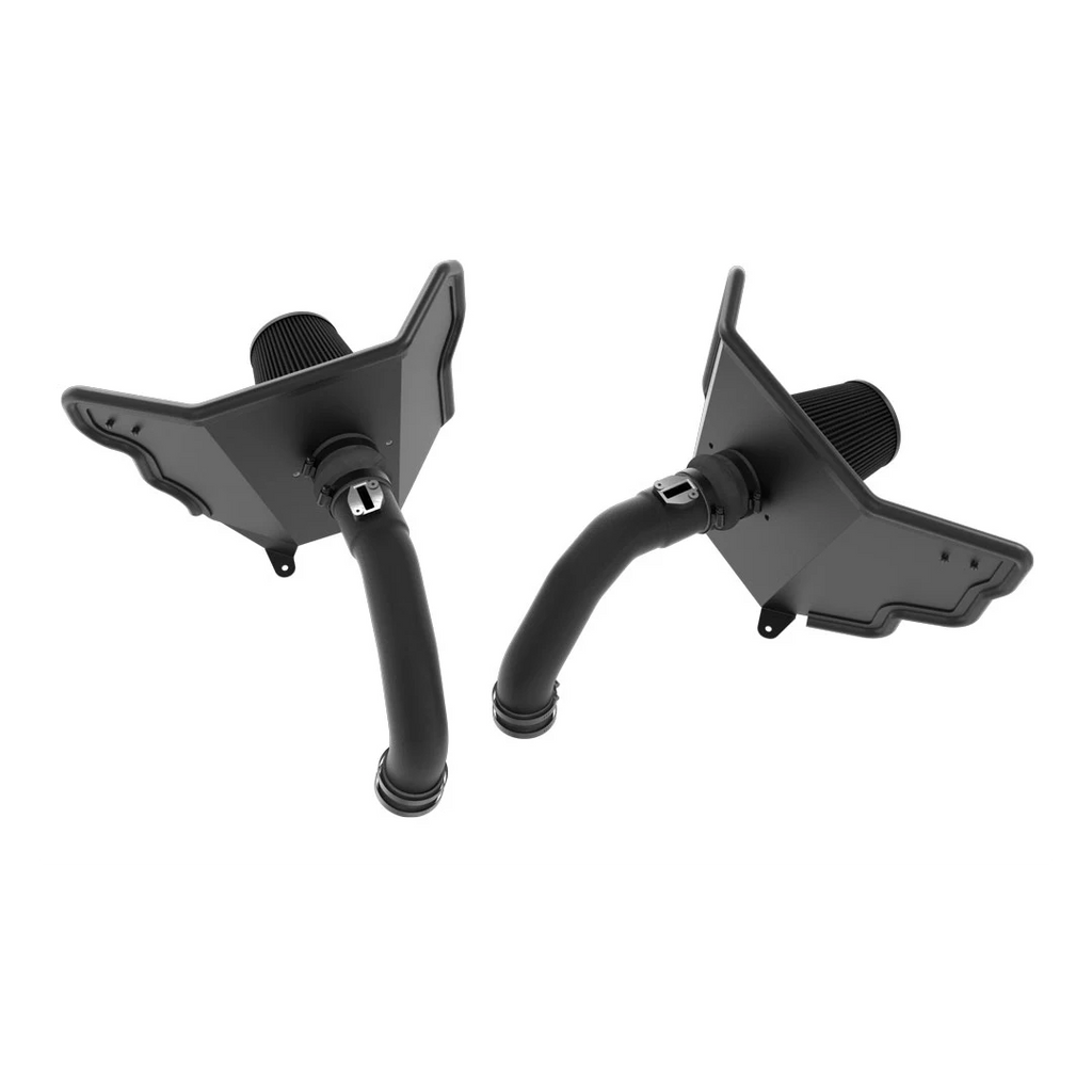 Blackhawk Induction™ air intake systems feature an oil-free synthetic filter media, black powder-coated aluminum intake tube, and all-black components. The layered DRYFLOW® synthetic filter provides increased airflow and exceptional engine protection without requiring oil, and a steel heat shield helps protect intake air from the high temperatures of your engine bay. The system can typically be installed in less than 90 minutes. Some intakes are not legal for sale or use on any pollution controlled motor vehicle in California. See the product specifications for CARB status on each part for a specific vehicle.