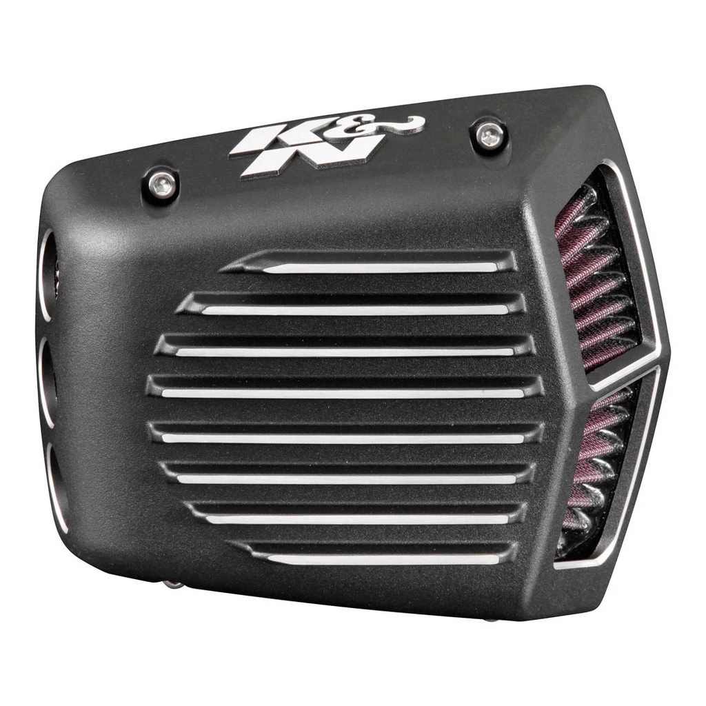 K&N Street Metal Air Intake Systems for Harley Davidson® motorcycles replace the restrictive stock OE air cleaner with an oversized K&N High-Flow Air Filter and a high-volume cast aluminum housing. If you're looking for an aggressive appearance but want a significant increase in airflow, resulting in more power, this high-flow air intake system is exactly what your Harley needs. Installation is so simple, it can usually be done in 90 minutes or less. The K&N air filter is washable, reusable, pre-oiled and ready for installation. This model features a matte black housing with silver details and sanded fins. Internal breathers provide a sleek, clean appearance. Classic styling with a savage appeal.