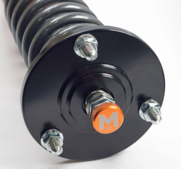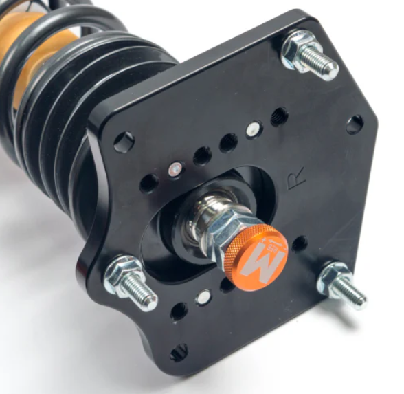 This set of NON-INVERTED suspension also includes, where applicable, camber-adjustable front Top Mounts and solid rear Top Mounts. The camber adjustment will offer you more wheel adjustment and allow this geometry to be altered to transform front -end grip. In this set front and rear dampers utilize a coilover design. By choosing this design you prioritize adjustability and the performance of your car.