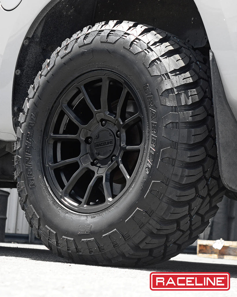 • Black Out snap in cap with contrasting embossed Raceline logo Push thru cap for 8 lug applications