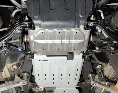 The high-quality laser cut RIVAL skid plates are made from deep stamped 1/4-inch thick aluminum alloy. This durable underbody armor offers both a lightweight and high strength solution for underbody protection. Combined with a no drill installation, it’s an easy choice to protect underbody of your vehicle from rocks, logs and scrapes. Being an extremely corrosion resistant material aluminum will not rust even if the surface coating becomes gouged or scratched. Get this great underbody protection along with non-corrosive features of aluminum.