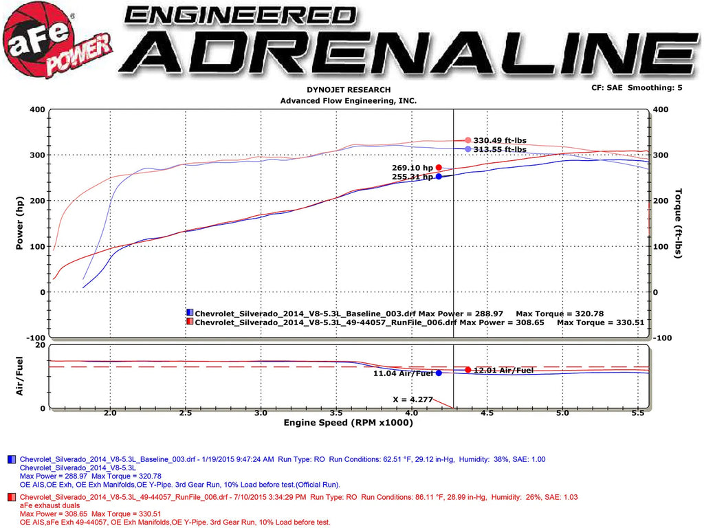 - Added an astounding +14 horsepower and +17 lbs. x ft. of torque as verified by our in-house dyno (vehicle tested 5.3L engine)