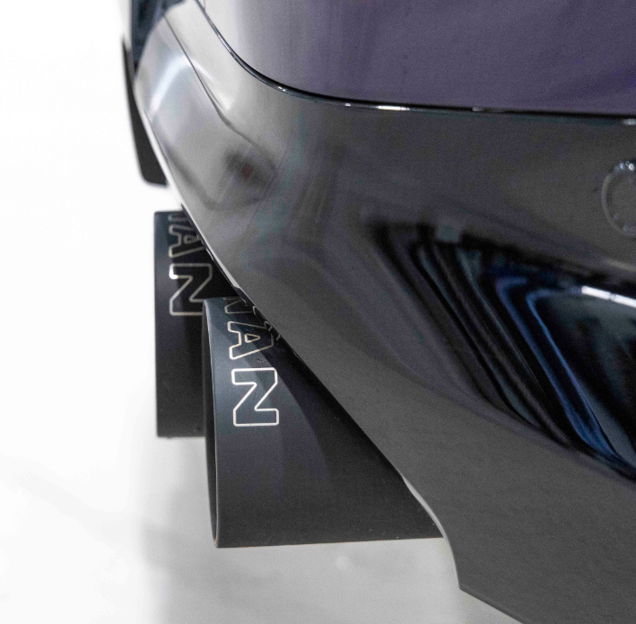 - Quad 4" diameter clamp-on, double-walled, black ceramic coated and laser engraved exhaust tips