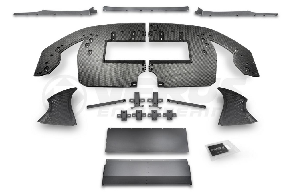 The front splitter is part of our Ventus 2 Aerodynamics Packages for the G86 BMW M2. The Ventus 2 kits boost downforce significantly from the factory vehicle. The goal was to create a package that dramatically improved the aerodynamic performance from a factory BMW M2 in a safe and balanced package for the typical track/HPDE enthusiast. Another goal was to retain street-ability from the aerodynamic components; with reasonable front splitter stick out and rear wing widths.