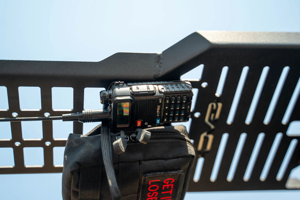 Our 6th Gen 2-Door Bronco Overhead Molle Panel provides extensive mounting and storage capabilities without compromising your limited interior space. You can attach a med kit, holster, knife sheath, CB or race radio, phone mount, multi-tools, and more for quick access to your daily gear. Blankets, bags, and other smaller items can be strapped down to the top of the panels for additional storage. The 1 1/4-inch steel tube located at the rear of the molle panel can be utilized as an additional mounting point for accessories or as a grab handle for your back seat passengers when taking them out on the trail.