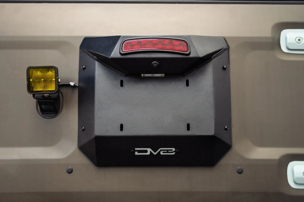 The DV8 2021+ Ford Bronco Spare Tire Delete covers the hole that is left when removing the spare tire & carrier from the back of your Bronco. It was designed to utilize all factory features while also cleaning up the look of your tailgate. Our delete integrates the factory third brake light & license plate light into its design. Additionally, the OEM backup camera retains full functionality when relocated to our spare tire delete. This kit includes a pod light mount that works great for supplemental rear lighting. Installation is simple and includes all necessary hardware- you’ll simply need basic wiring knowledge for success.