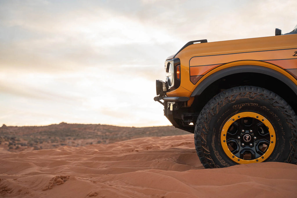 The front bumper is made from heavy-duty steel tubing for a durable and unique design. It is finished in a resilient micro-texture black powder coat to accent your Bronco’s sleek exterior. The bumper features metallic gray accent panels for a nice finishing touch that mimics the iconic prerunner style bumpers. Included with the bumper is a full front skid plate to protect your front undercarriage from rocks, shrubs, and debris. Unlike many tube style bumpers, our bumper offers solid steel recovery points for vehicle recovery options when stuck on the trail. The bumper is bolt-on for a straightforward install process, and it features welded-in zip tie tabs for clean wire management. The bumper retains the factory parking sensors. Whether you’re an avid rock crawler or desert racer looking for maximum front-end clearance or you’re looking to add a prerunner aesthetic to your Bronco, our Tube Series Front Bumper provides the perfect combination of style and utility to suit both worlds.