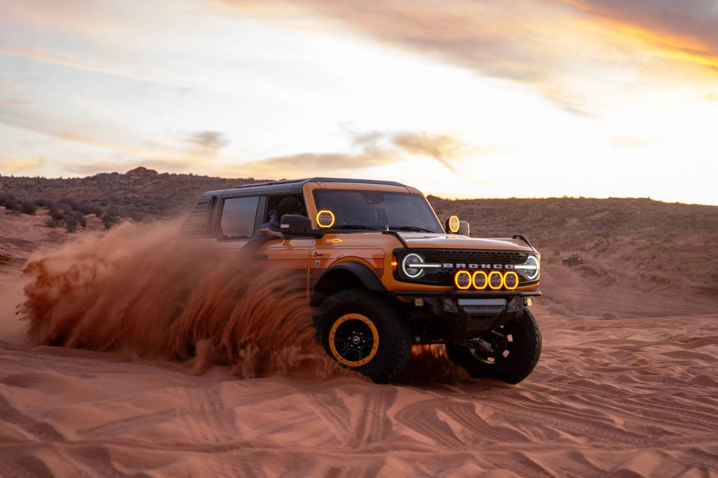 Our 6th Gen Bronco Tube Series Front Bumper provides a sleek look that is perfectly balanced between a high speed desert racing and rock crawling style. Its ultra high-profile design provides maximum clearance when navigating technical trails to prevent you from getting hung up on rocks or other larger off-road obstacles. To add your own personal touch, the bumper features extensive lighting options, so you can configure the bumper to align with your specific lighting needs. The bumper’s center mount can run one 20-inch dual row light bar or six 3-inch pod lights, and the two wing mounts fit one 3-inch pod light each. For even more lighting capabilities, you have the option of mounting the included prerunner style light hoop which can run one 20-inch single/dual row light bar, four 7-inch round lights, or eight 3-inch pod lights.