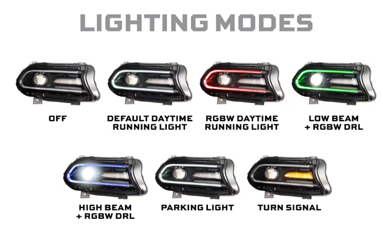 The 2015-2023 Dodge Charger XRGB Multicolor headlights from Morimoto deliver the personalization you seek. These use color-changing LEDs that allow you to customize their DRL color using a simple-to-use Morimoto XBT Bluetooth app on your Apple or Android smart phone. Despite that, they sacrifice nothing in terms of intensity or consistency! Unlike the alternatives that have been out for a while which use a low-quality halogen projector, the XRGB headlights make use of an incredibly powerful Bi-LED projector that produces a huge boost of intensity and road coverage compared to the stock Charger headlights. XRGB headlights are built to an OEM+ standard and should easily last the life of your car! We're proud to stand behind the product with a five-year warranty.
