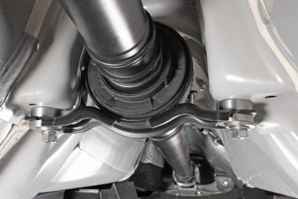 The PERRIN Driveshaft Carrier Bushings replace the soft OEM bushings with solid stainless steel bushings to reduce driveshaft movement under hard acceleration.