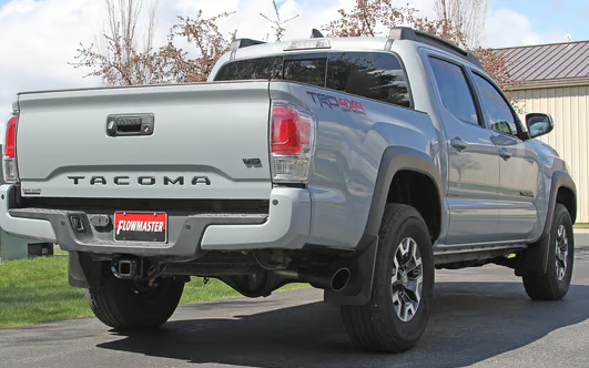 The new Flowmaster® Flow FX® cat-back exhaust system for the 2016-2023 Toyota Tacoma with the 3.5L engine is manufactured using durable 409 stainless steel throughout and features 2.50-inch mandrel bent pipes for better exhaust gas flow, and a Flow FX "straight-through" muffler for a great moderate sound level and maximum performance. The system is finished off with a 3.50-inch diameter black ceramic-coated 304S stainless steel tip, giving your Tacoma a custom look that goes hand in hand with that deep performance Flow FX sound. The system uses all the existing factory hanger locations and includes installation instructions and all necessary hardware for an easy installation that you can do at home. Backed by Flowmaster's lifetime Limited Warranty.