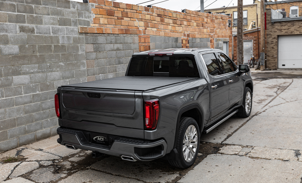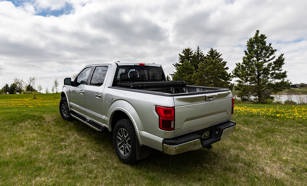 Open, closed or partially flipped back, your LOMAX Folding Cover will automatically lock in any position with the reinforced nylon, ten-point system. Simply pull on the release cord to unlock your Access tonneau cover from either side of your truck bed. Ride at top speeds with your LOMAX Stance Cover fully open using the RigidLink Locking system, which utilizes powder-coated steel pivot links with rubber bushings and rooftop anchors. This industry-leading feature holds the panels vertically at a 90° angle, which stops noisy vibrations and prevents damage to your cab and rear window.