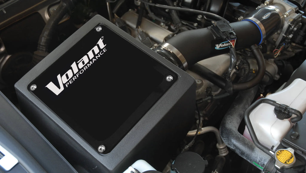 Volant air intake systems utilize a high-velocity venturi filter adapter which provides a smooth transition through the MAF sensor into the intake tube for a much needed airflow improvement over the factory rubber tubing and resonator box. Volant's Cool Air box is larger than the factory unit and incorporates a larger opening to collect a higher volume of colder ambient air.
