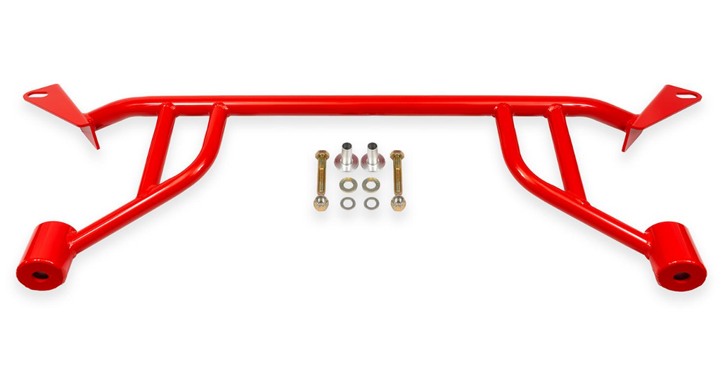 Greatly increase K-member rigidity and steering stability on your S650 Mustang with a Front Chassis Brace from BMR Suspension! Factory K-members and lower control arm mounts can deflect under hard braking and extreme lateral loading. BMR’s Front Chassis Brace (CB770) stiffens the factory K-member and is designed for street performance, drag racing, and handling applications. When performance is a must, rely on BMR Suspension!