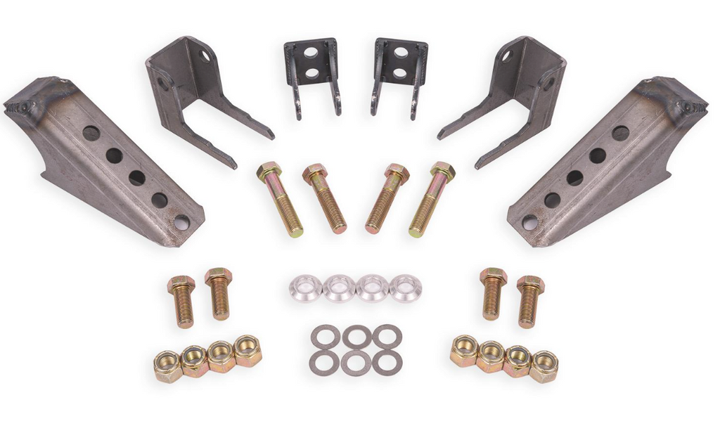 Designed for street performance, drag race, and handling applications, BMR makes its coil-over brackets from strong 1/4-inch laser-cut steel plate plate. These plates weld in to the chassis and rear end, adding additional strength to the mount. This kit is designed to work with any coil-over with a 1 1/4-inch-wide bushing and 1/2-inch bolt hole. When performance is a must, rely on BMR Suspension!