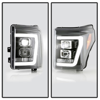 Spyder Ford F250/350/450 2011 - 2016 V2 High-Power LED Headlights-White Light Bar-Black PRO-YD-FS11V2PL-BK