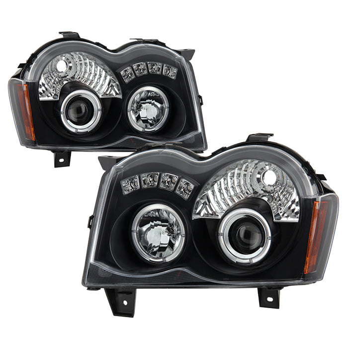 ( Spyder Signature ) Jeep Grand Cherokee 08-10 Projector Headlights - LED Halo - LED ( Replaceable LEDs ) - Black - High H1 (Included) - Low 9006 (Not Included)
