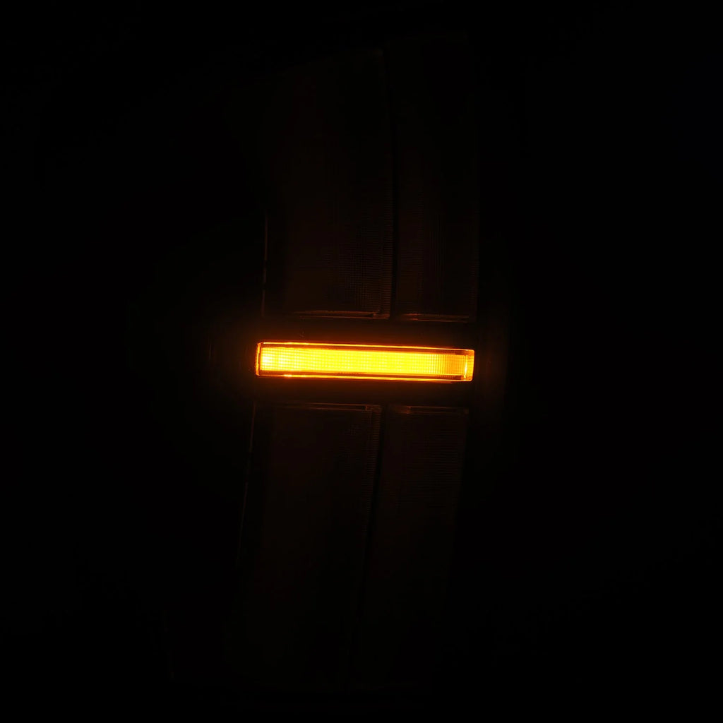 The trapezoidal prisms illuminate with red LEDs for parking lights, intensifying when braking. For turn signals, amber LEDs activate at the center bar between the prisms in a dynamic sequential flow, adding a modern touch. The bottom two LED prismatic tubes light up with white LEDs as a reverse indicator.