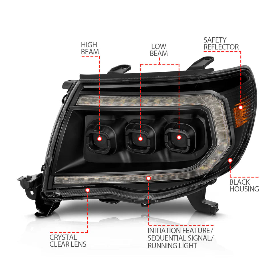 ANZO 2005 - 2011 Toyota Tacoma Full LED Projector Headlights White DRL/Init/SeqSig Black - Pair