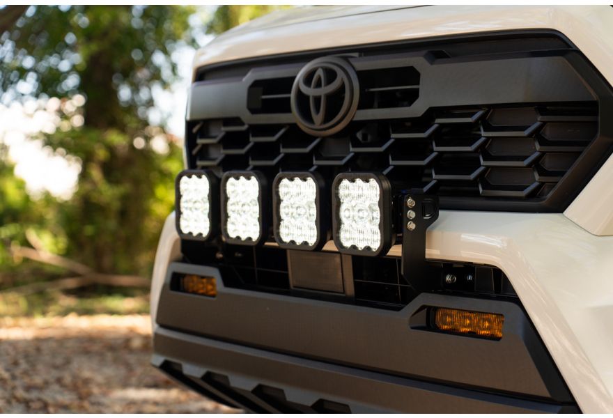 Perfect Fitment. The Grille CrossLink Lightbar Kit for the 2024+ Toyota Tacoma from Diode Dynamics allows you to mount four linked SS5 LED pods in front of the factory grille. These application-specific brackets were CAD-designed to bolt into place using factory mounting points for straightforward installation.