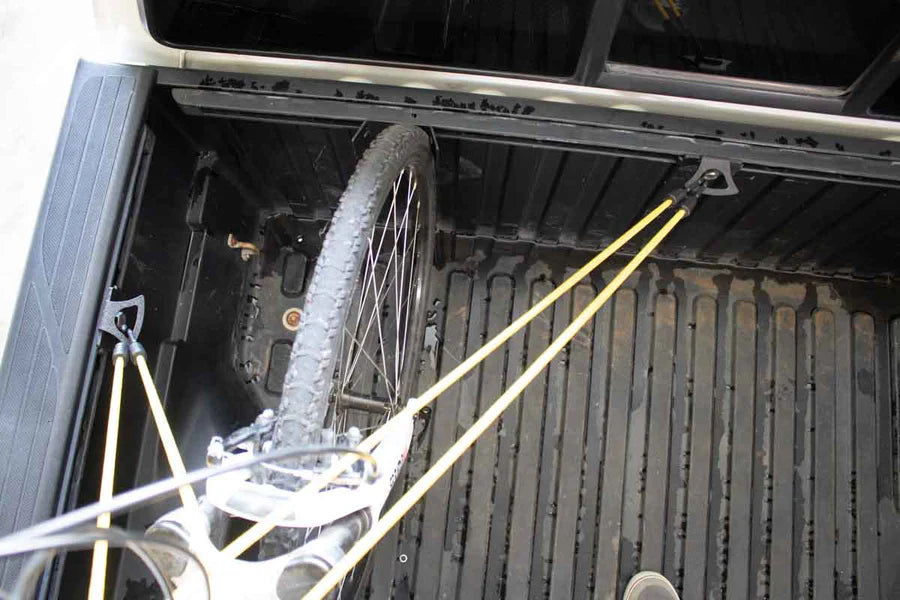 Chock up to two bicycles or your favorite utility vehicles with our Tacoma bed rail tie downs. It accepts most ratchet straps and bungee cords, and is perfect for either holding your two-wheeled friends, or your favorite cooler and gear!