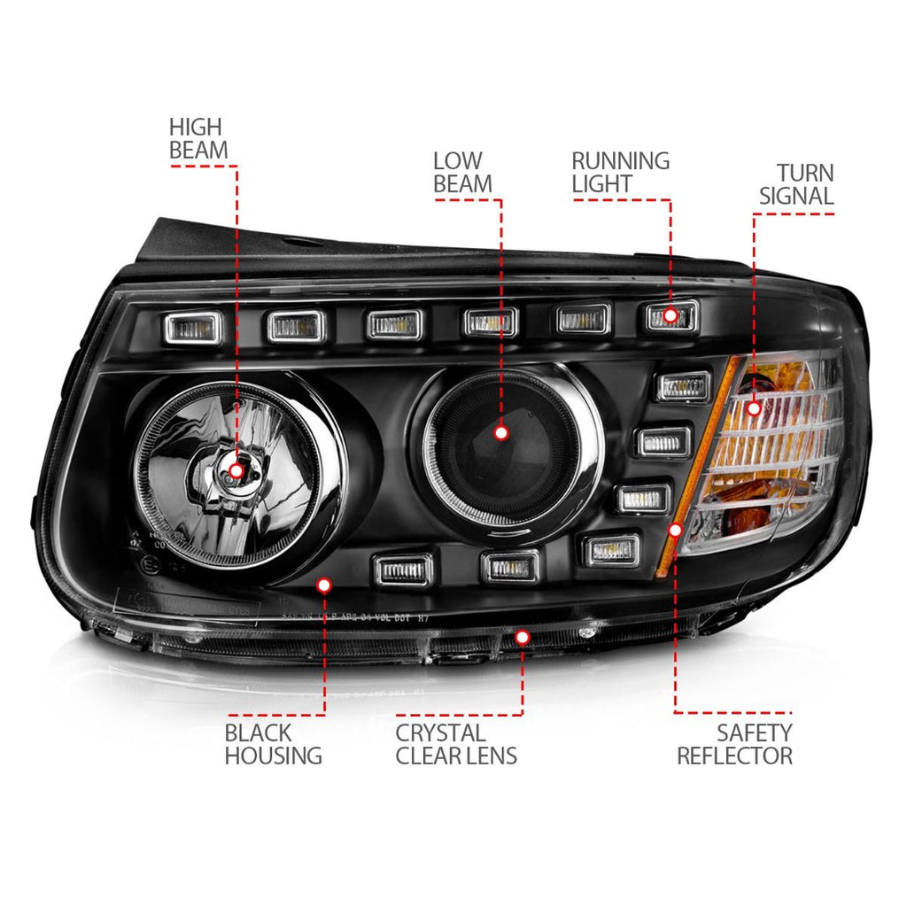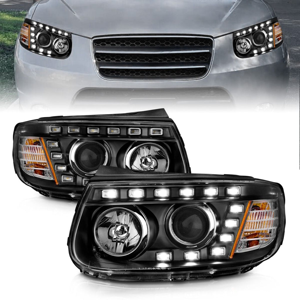 ANZO 2007 - 2012 Hyundai Santa Fe Projector Headlights w/ LED Black