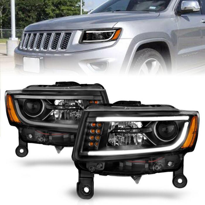 ANZO 2014 - 2015 Jeep Grand Cherokee Projector Headlights w/ Plank Style Design Black ( Halogen only )
