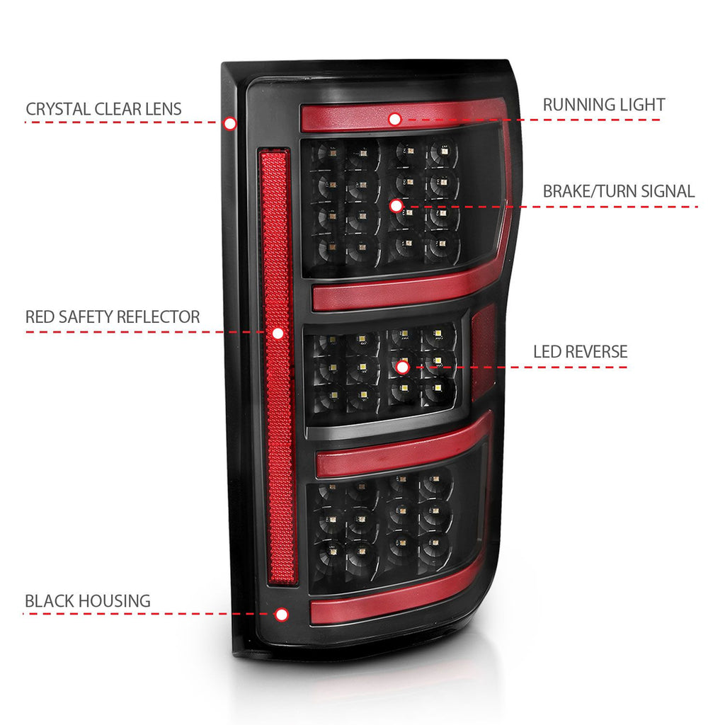 ANZO 2018 - 2020 Ford F-150 LED Taillight Black Housing Clear Lens Red Light Bar W/Sequential