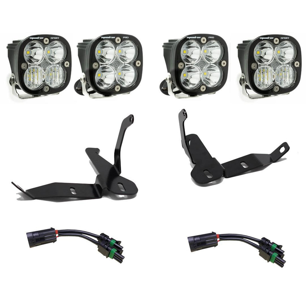 The Honda Talon Squadron Pro Headlight Kit from Baja Designs will help you get the most out of your UTV while keeping you safe out on the trails. Utilizing our next-generation LEDs within two Squadron Pros pushing 4,095 raw lumens and two Squadron Sports with 3,162 raw lumens, this kit has everything you need for a quick install. This kit is the perfect complement to a bumper or roof-bar lighting solution. This plug-and-play mounting kit includes two vehicle-specific mounting brackets and a wiring harness, allowing you to use your factory high/low switch and mounting hardware. Paired with our 30-Day Satisfaction guarantee and Limited Lifetime Warranty for the ultimate in-purchase protection! USPTO Reg No. 5,766,659