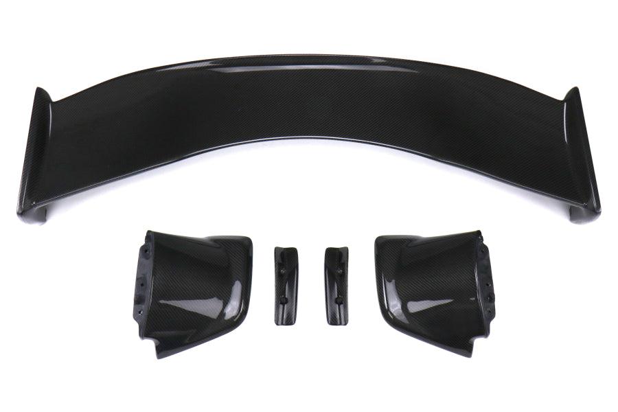 NOTE: The carbon fiber bases of this wing have a different bolt pattern than the stock STI wing. You can use your stock STI wing bases (painted) with the upper portion of this wing or drill new holes.