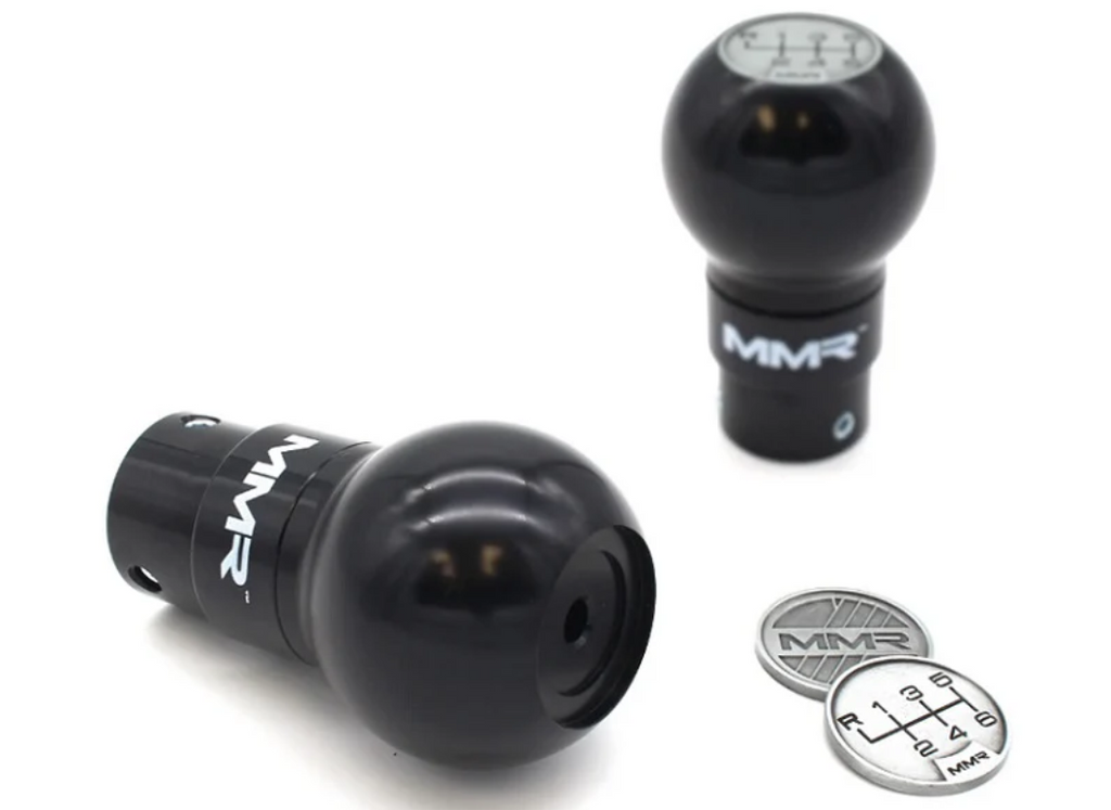 The MMR Gear Shift Knob gives you a choice of top to finish: two die-cast 'coins' are provided with each kit. This allows you to select between a conventional 6-speed shift pattern or a neat MMR logo option.