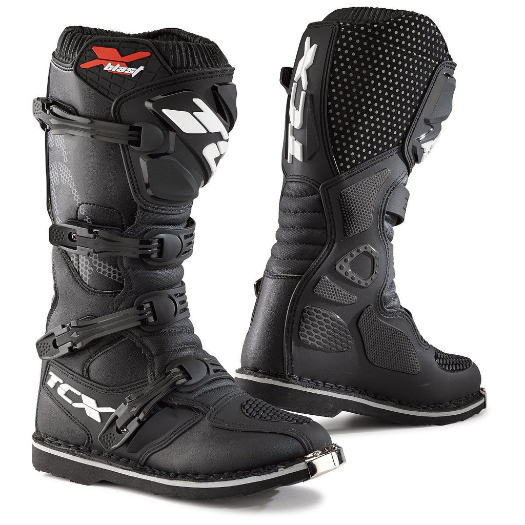 The X-Blast off-road boots feature a microfiber upper and sole with Goodyear construction, comfortable and protective for use on motocross and enduro motorcycles. Maximum safety is ensured by polyurethane reinforcements on the ankle, toe and shin. Their fastening system with four interchangeable and adjustable aluminum levers is extremely easy and functional. The sole boasts "Goodyear" construction, which entails different thicknesses and densities, as well as a steel insert to protect the construction itself, ideal for keeping the sole's layers together whatever the impact. The tread is designed to ensure excellent multilateral traction and grip on all types of terrain. The breathable Air Tech lining ensures maximum comfort even during the warmest season, keeping the foot area dry and ventilated.