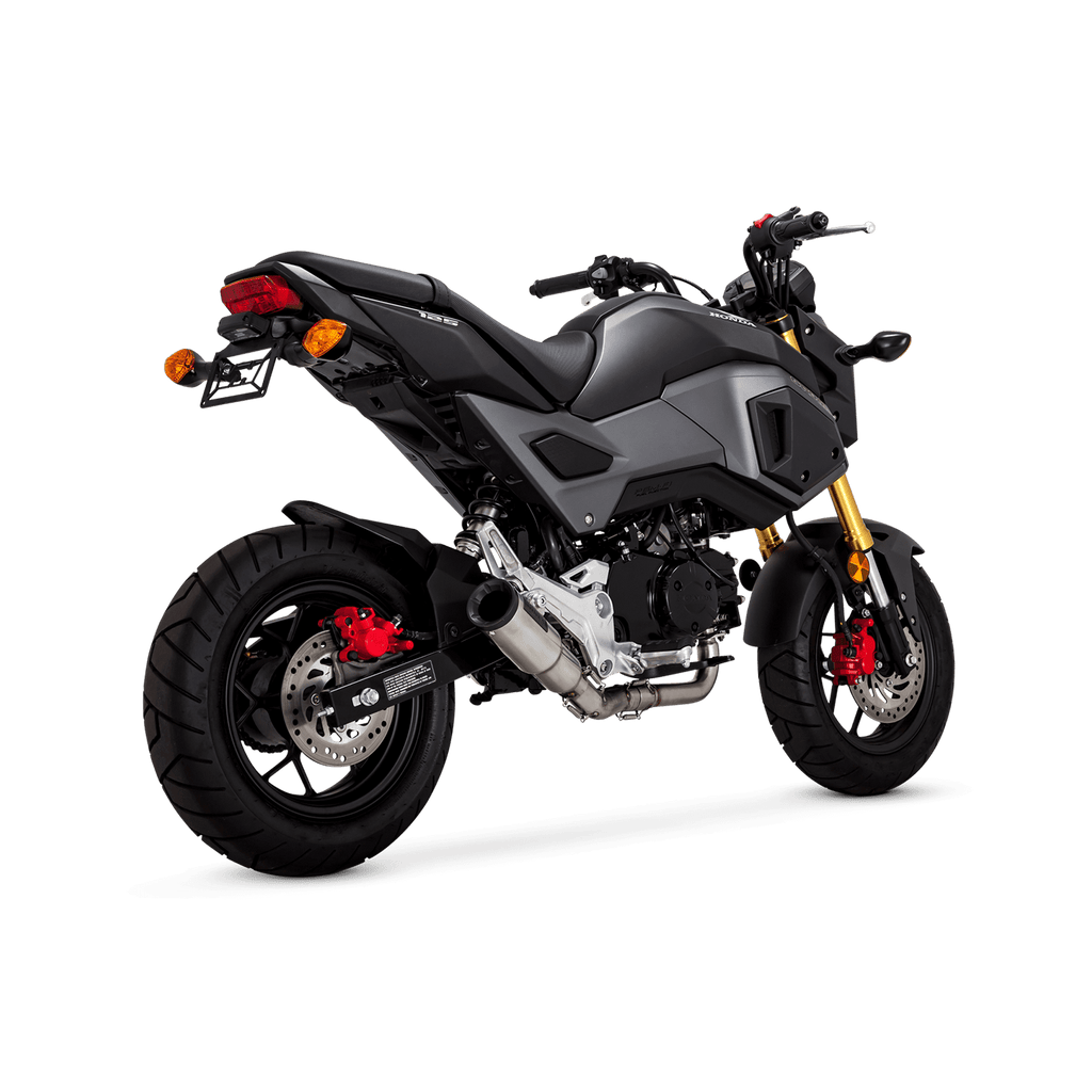 Hand TIG welded and constructed of 304 stainless steel with spring-clip joints and a brushed finish, the Hi-Output Hooligan has the looks of a GP pipe and gives the Grom a healthy bark to level up the fun!