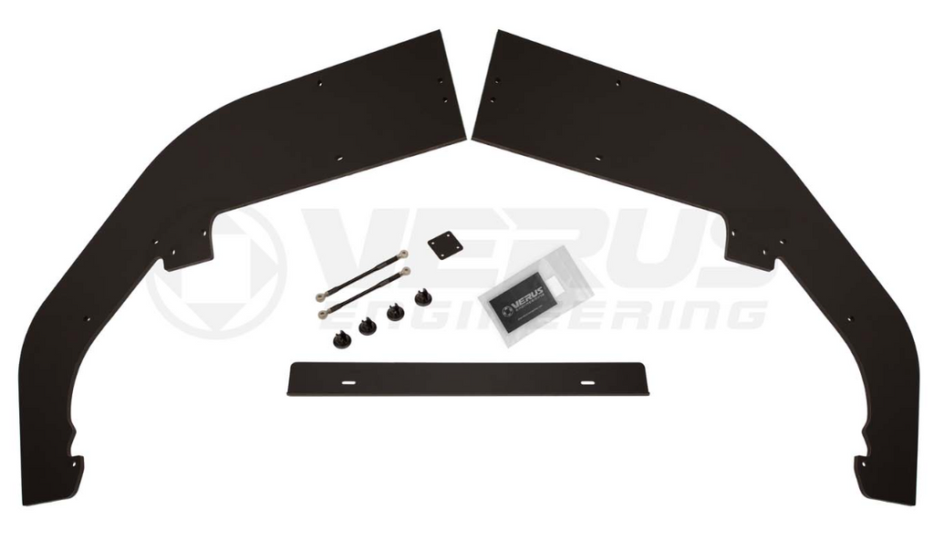 The Verus Engineering Front Splitter increases front end downforce and reduces drag in a simple to bolt-on package. The unit is made from a hard, durable, stiff plastic that does not bend below the car like aluminum and resists cracking when hit from below.