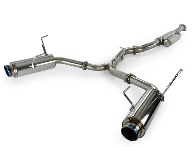 This is the HKS Hi-Power Exhaust System. This exhaust system features a larger piping diameter, smooth bends, and durable stainless steel construction to provide your vehicle with a lifetime worth of performance. The design removes any restrictions to the exhaust flow that is associated with the OEM design, allowing your engine to exhale much easier for improved horsepower and torque, all while creating an aggressive exhaust note.