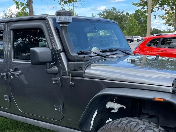 Additional Features. Equipping your rig with a snorkel allows you and your Jeep to go through large mud puddles you could not otherwise wade through. The snorkel prevents the intake from taking in water and hydrolocking your engine. Rugged incorporated channels into this intake design to direct water away from the intake. The snorkel also reduces the stock filter's exposure to dust, grime and dirt to extend the life of your filter. Installing this snorkel requires slight modification of the stock fender. All hardware is included to complete the installation.
