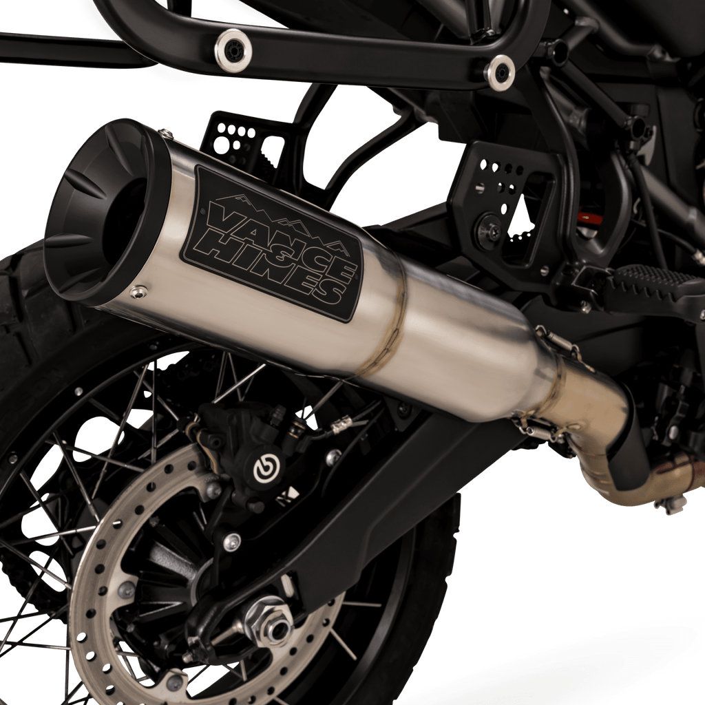 The Vance & Hines Adventure Hi-Output 450 delivers a strong increase in horsepower and torque vs the bike’s stock Revolution Max exhaust system while reducing overall weight of the exhaust by nearly 6 lbs. The new rugged look is a familiar round, stepped-style Hi-Output canister, but with a new brushed finish which enhances the bike’s style over the stock black exhaust.